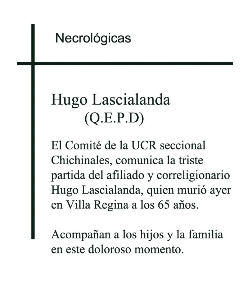 Servicio Necrológico: Hugo Lascialanda