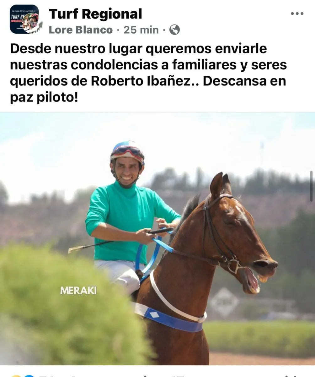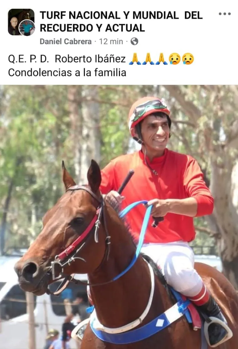 Esta tarde se confirmó la muerte de Roberto Ibañez (34), el jockey que en la mañana del domingo sufrió graves heridas cuando el caballo que montaba se desplomó en plena carrera de un festival hípico que se adelante llevaba en las instalaciones del Club Hípico El Chiripá. .