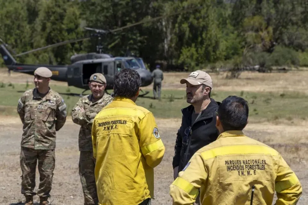 El Ministro de Defensa de la Nación, Luis Petri , llegó este viernes a la región sur del Parque Nacional Nahuel Huapi , donde desde hace días se lucha contra un incendio forestal que ya consumió más de dos mil hectáreas de bosque nativo. El funcionario llegó en helicóptero al camping Viejo Manzano , en el marco de los trabajos de combate contra las llamas que avanzaban por la zona.