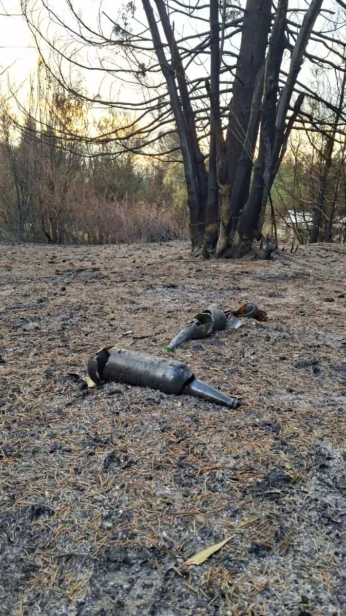 Otra de las imágenes que se difundió es la de botellas quemadas, siendo el plástico el conductor del fuego y el generador del siniestro.