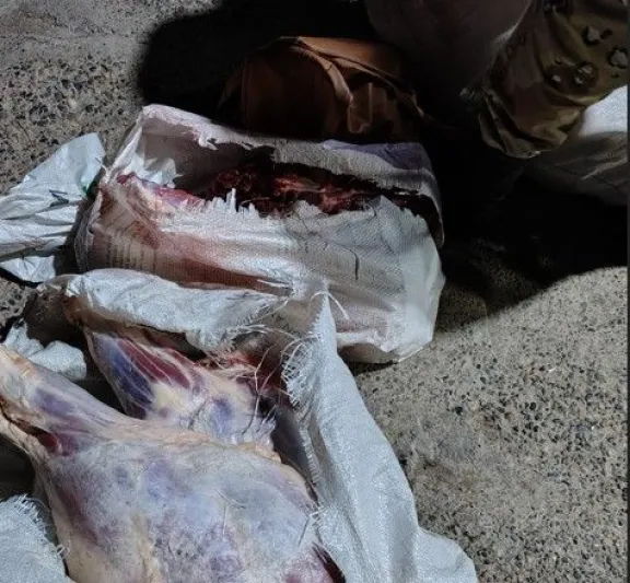 Luego de identificarse a los ocupantes de la camioneta, ambos oriundos del Portal del Valle, se constató en el destacamento ubicado en cercanías al puente de Valle Azul que en los asientos traseros de la Ranger transportaban bolsas y mochilas que contenían alrededor de 90 kilos de carne (cuartos, paletas con costillares, costeleteros completos), animal vacuno que habría sido faenado en un establecimiento no habilitado.