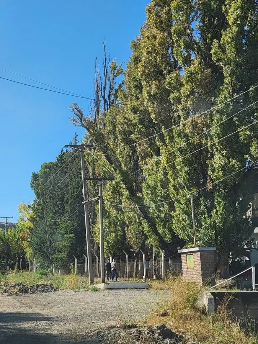 Según informó la empresa distribuidora Edersa, el árbol cayó mientras vecinos realizaban tareas de extracción en una propiedad privada. El desplome provocó daños en el tendido eléctrico, lo que derivó en una salida de servicio a las 15:20.