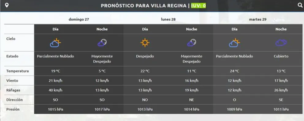 Por otra parte, el viento estará presente también durante la jornada de hoy, aunque no con la intensidad que se sintió durante los últimos días. Durante al día la constante será un viento de 13 kilómetros en la hora, aunque pueden registrarse ráfagas de hasta 40 kilómetros.