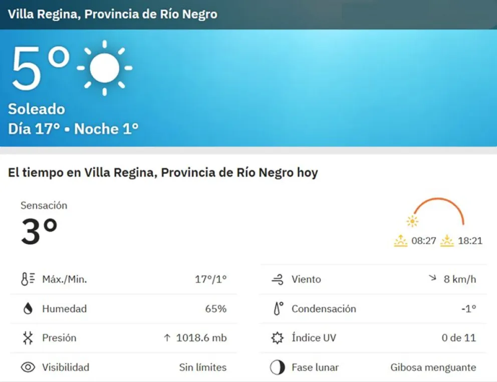 La temperatura mínima de hoy estuvo por debajo de los 5 grados en la zona urbana, y rondó el cero grado en la zona rural. El viento, si bien estará presente este domingo, no será como el sábado.