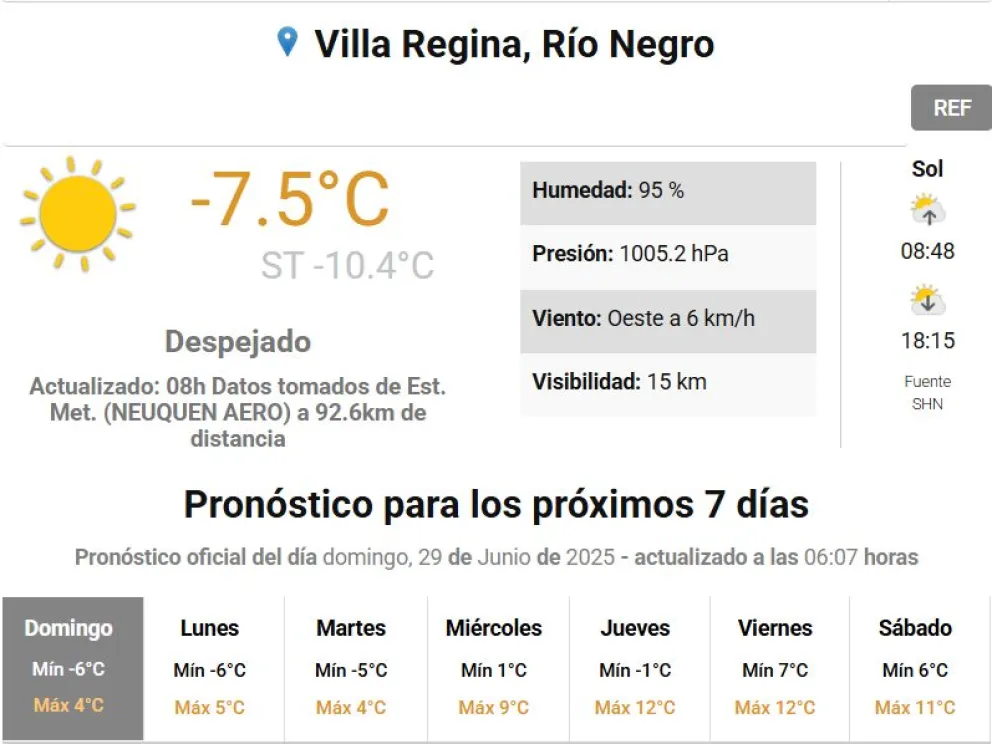 El clima: temperaturas bajo cero para el último domingo de junio