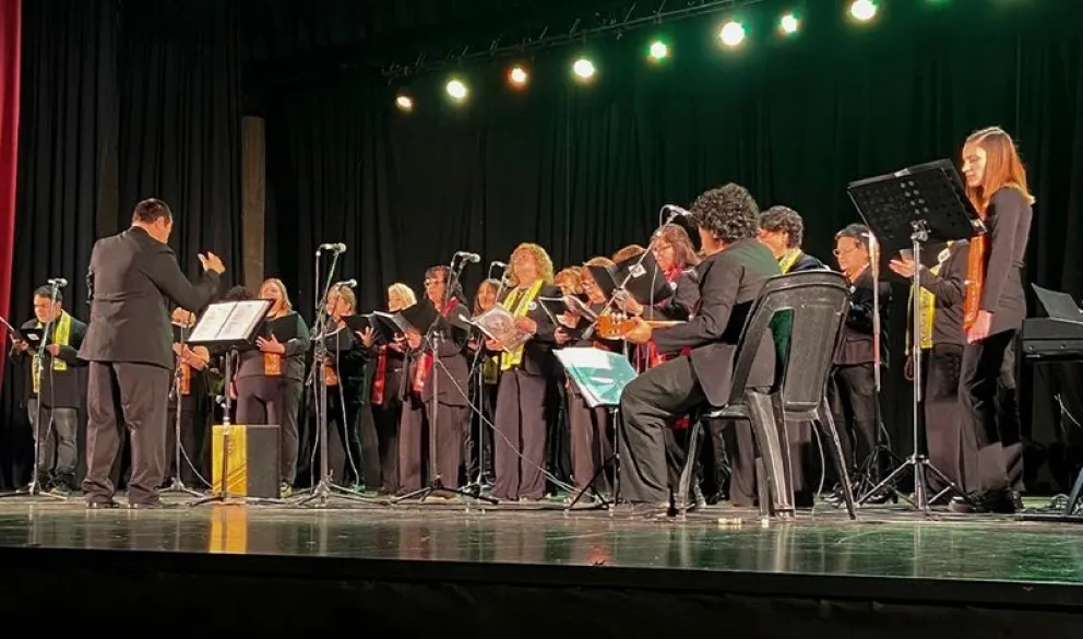 La noche contó con las presentaciones del Coro Municipal de Villa Regina, el Quinteto de Vientos Perla del Valle, el Cuarteto E’llos y el Coral Ave Fénix de General Roca.
