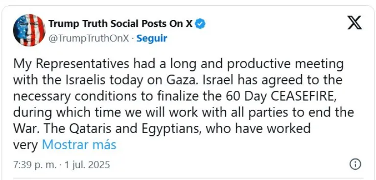 Donald Trump anunció que Israel aceptó la propuesta de alto el fuego en Gaza por 60 días