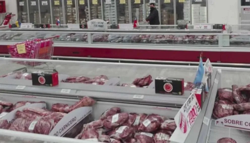 Cortes de carne argentina en góndolas de supermercados chilenos, antes de la reciente suspensión de importaciones dispuesta por el SAG. Foto (DelPuebloRadio)