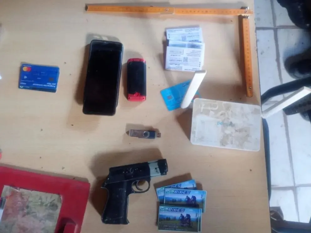 De acuerdo a la información suministrada por el área de Prensa de la Unidad Regional II, en el lugar se secuestraron diversos elementos vinculados a la investigación. Un teléfono celular Motorola color rosado, tres chips de telefonía, tarjetas de débito y de la plataforma Mercado Pago, un router de la empresa Personal, un celular Samsung con teclas, un elemento de utilería similar a un arma de fuego y formularios de identificación de bicicletas con el logo de una reconocida empresa del rubro.