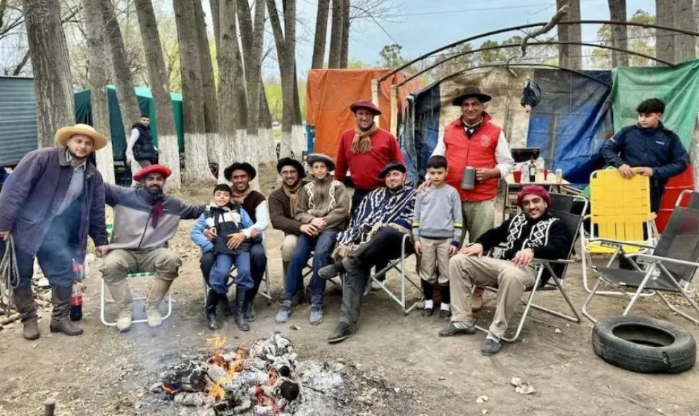 Muy cerca del fogón pasó Gaspar, oriundo de Lamarque, y se detuvo unos segundos. Es la primera vez que vive la experiencia. Planea quedarse hasta el domingo, si los días acompañan, mientras mira el cielo buscando alguna certeza.