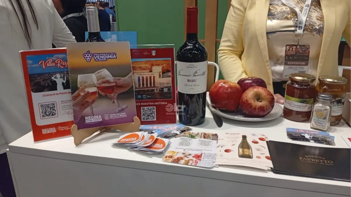Por primera vez, Villa Regina dice presente en la Feria Internacional de Turismo (FIT), dentro del stand del Gobierno de Río Negro en La Rural, en la Ciudad de Buenos Aires, con la participación de Luján Musso, directora de Cultura y Turismo, y Javier Chacón, director de Comunicación, de la ciudad. La presencia reginense comenzó ayer y se extenderá hasta el 30 de septiembre, con el objetivo de promocionar la oferta turística, cultural y recreativa.