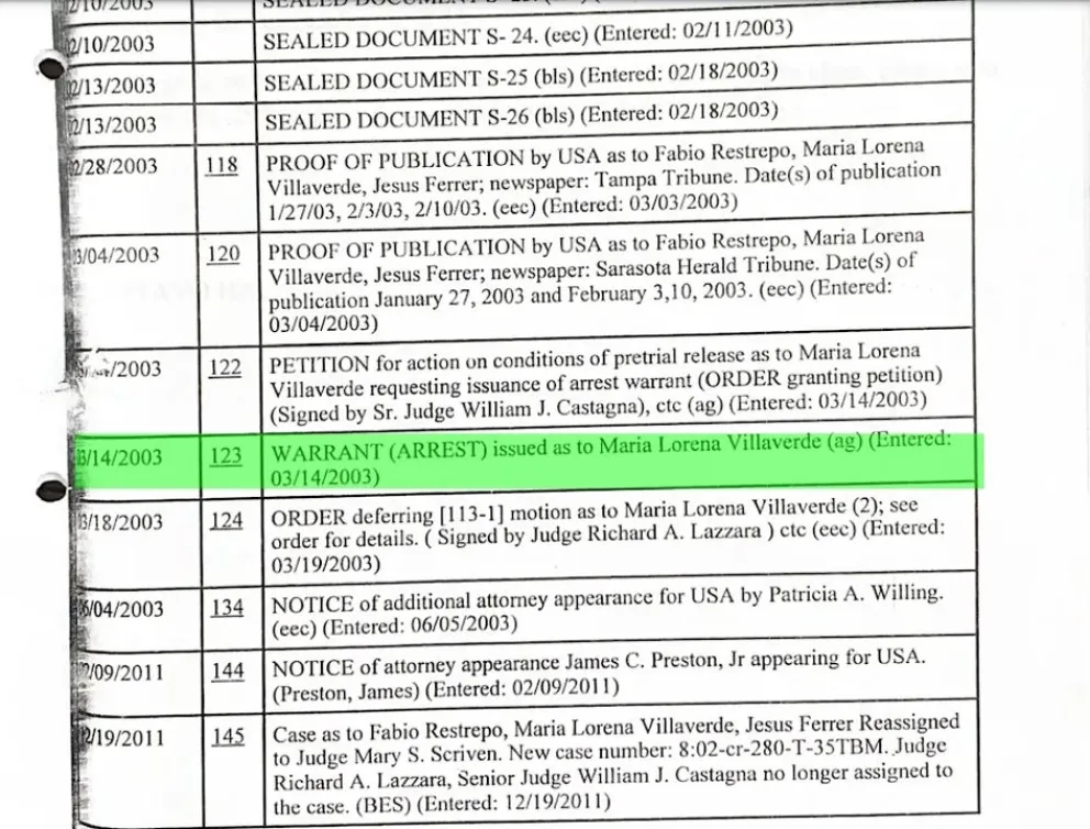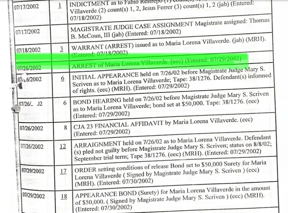 En el detalle del devenir de la causa consta que estuvo arrestada desde su detención, considerada culpable el 21 de octubre de 2022 y el 22 notificada de su sentencia, medida que apeló y quedó en libertad a la espera de su confirmación. En abril de 2003 volvió a tener un pedido de prisión, que tres días después el tribunal decidió suspender la medida, y desde ese momento se abre un lapso sumado en incógnitas: nada se sabe de ella y de la causa hasta 2011, cuando vuelven a reabrirla en USA y ya sin suerte porque Villaverde, para entonces, vivía en Argentina.
