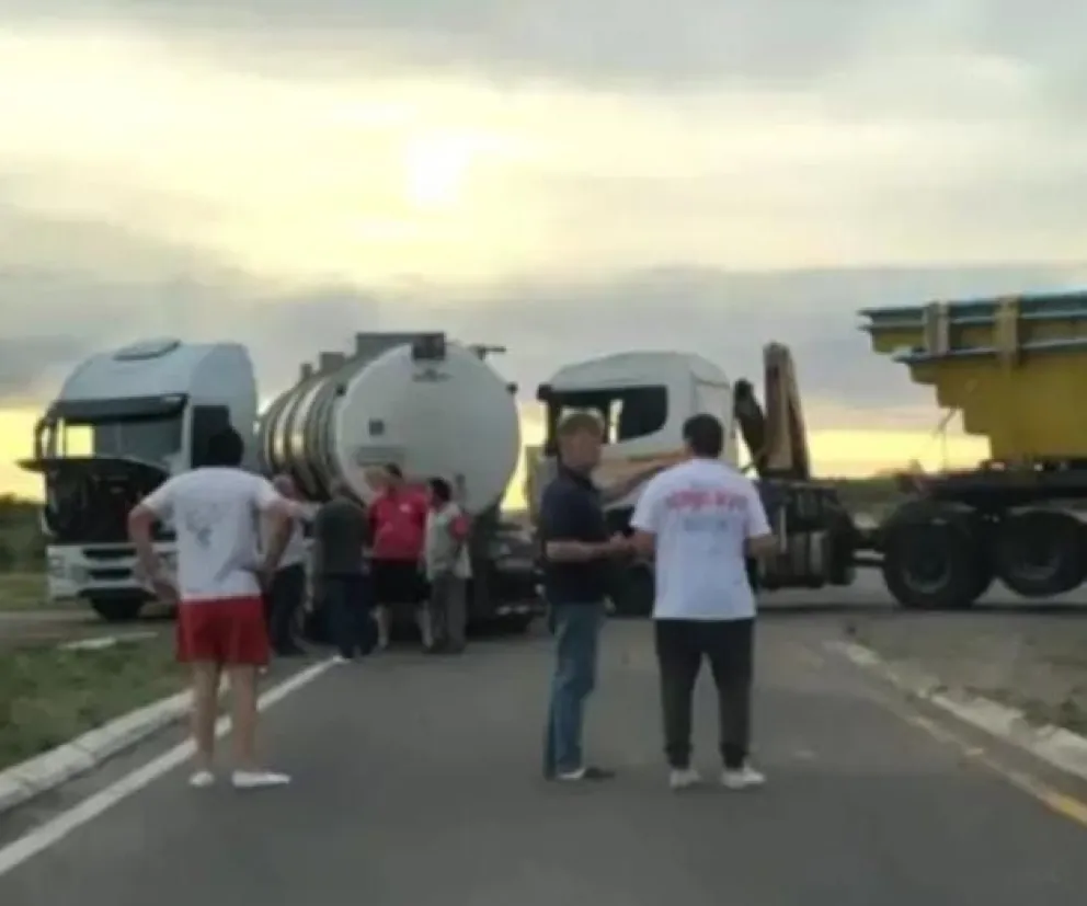 El golpe provocó que el primero de los camiones hiciera “tijera” y quedara atravesado sobre la cinta asfáltica, bloqueando completamente la RN 251 en el mismo sentido de circulación.