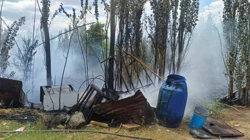 El fuego afectó un sector sin plantaciones, donde a lo largo de los años se fueron acumulando distintos tipos de elementos en desuso, desde residuos hasta restos de maderas, cubiertas, tambores plásticos y máquinas rotas.
