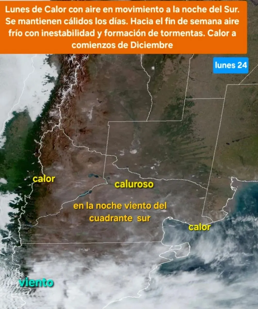 De acuerdo con Frassetto, el viernes, sábado, domingo y lunes ingresa aire frío en la cordillera, lo que podría provocar tormentas e inestabilidad en toda la región. Este choque de masas de aire —Atlántico y Pacífico— podría generar episodios de lluvia entre el 30 de noviembre y el 1 de diciembre, con temperaturas más moderadas, situadas entre los 25 y 30 grados.