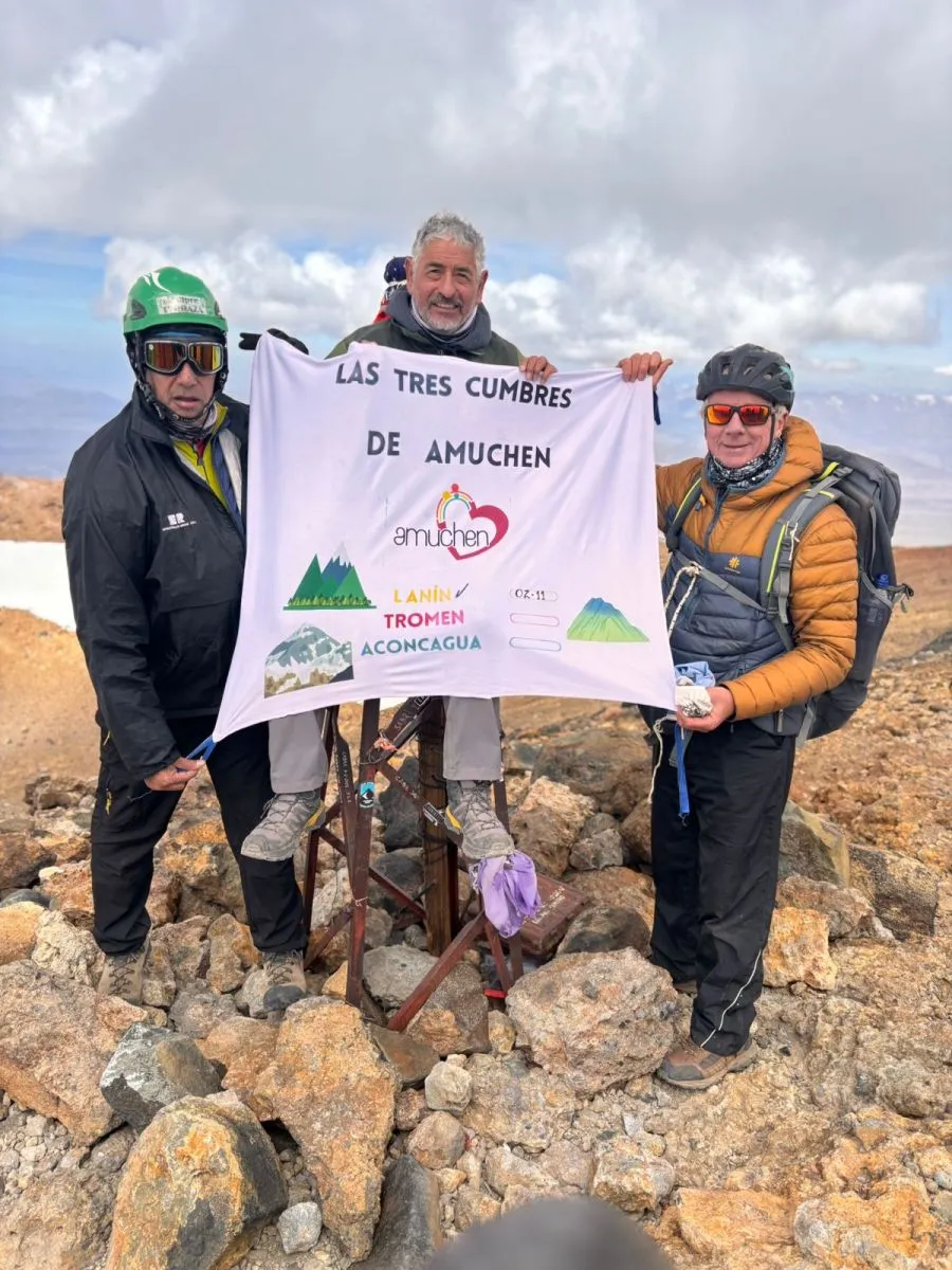 Tres cumbres por Amuchén: el equipo solidario hizo cumbre en el Tromen