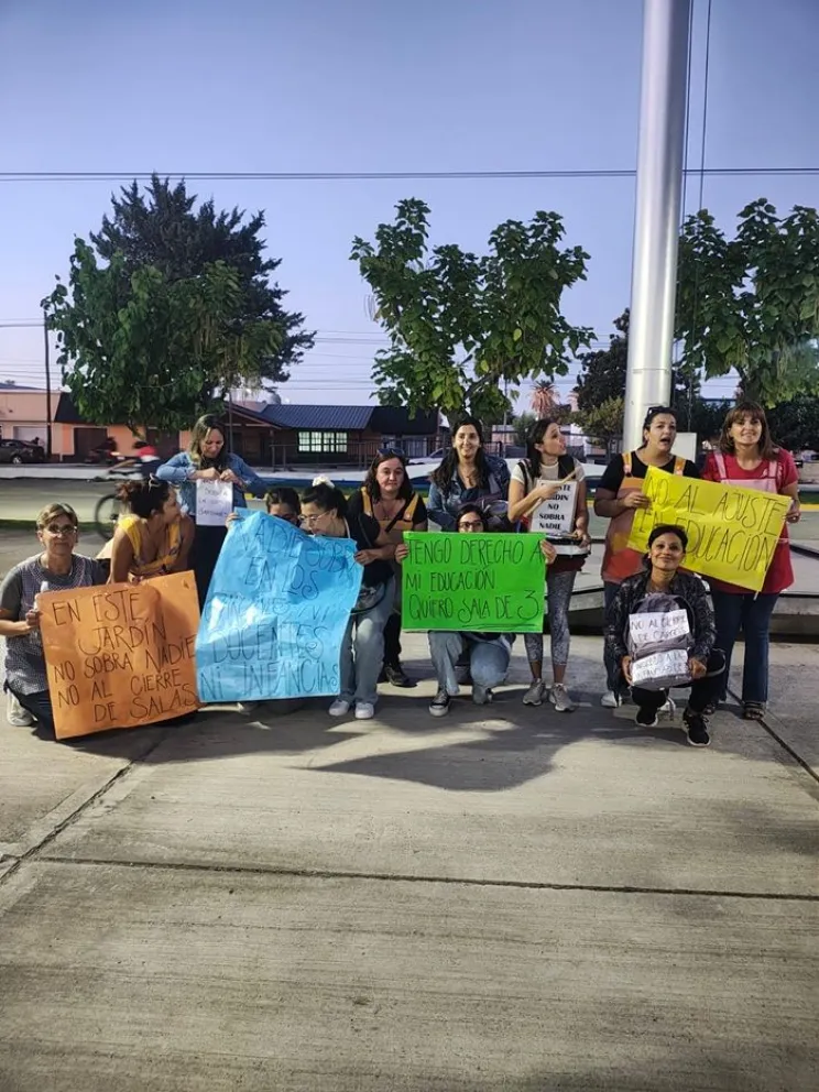Para pedir por la reapertura de una sala en turno mañana en el Jardín de Infantes N° 55 de Huergo, padres y docentes se movilizaron ayer en la localidad a partir de la convocatoria de la seccional local de Unter.
