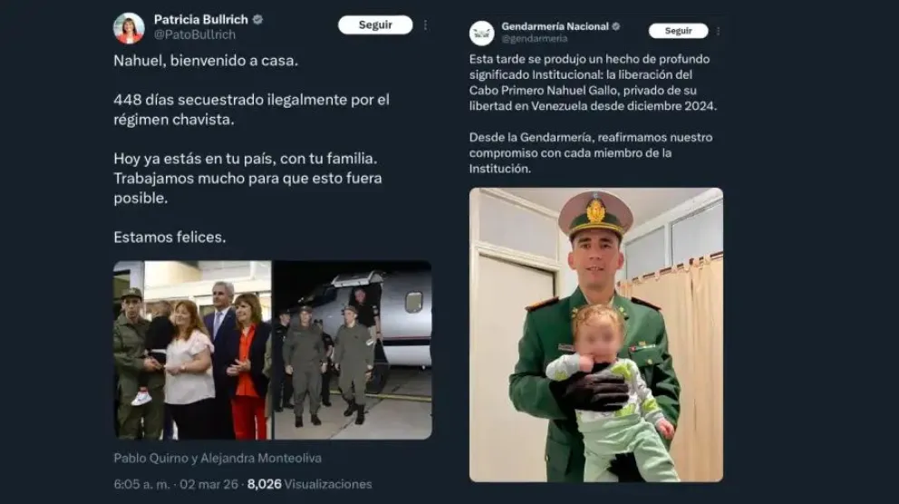 El caso de Nahuel Gallo ha sido seguido de cerca por las autoridades locales y los medios de comunicación en Argentina. Figuras destacadas como la ministra de Seguridad Alejandro Monteoliva y la senadora Patricia Bullrich, quien fue una de las figuras más involucradas en las gestiones para su liberación, se hicieron presentes en Ezeiza para brindarle su apoyo. "448 días secuestrado ilegalmente por el régimen chavista. Hoy ya estás en tu país, con tu familia", expresó Bullrich en su cuenta de X, destacando el esfuerzo colectivo para lograr este desenlace positivo.