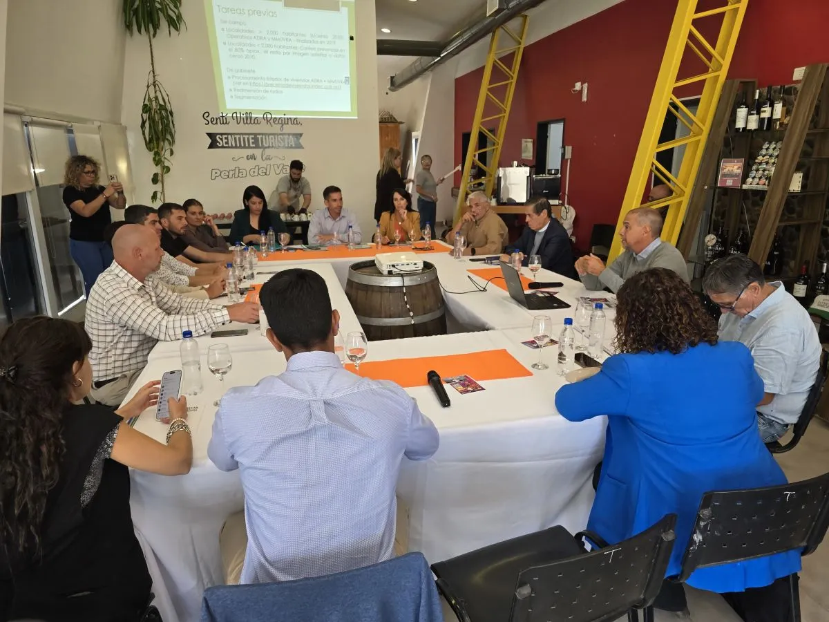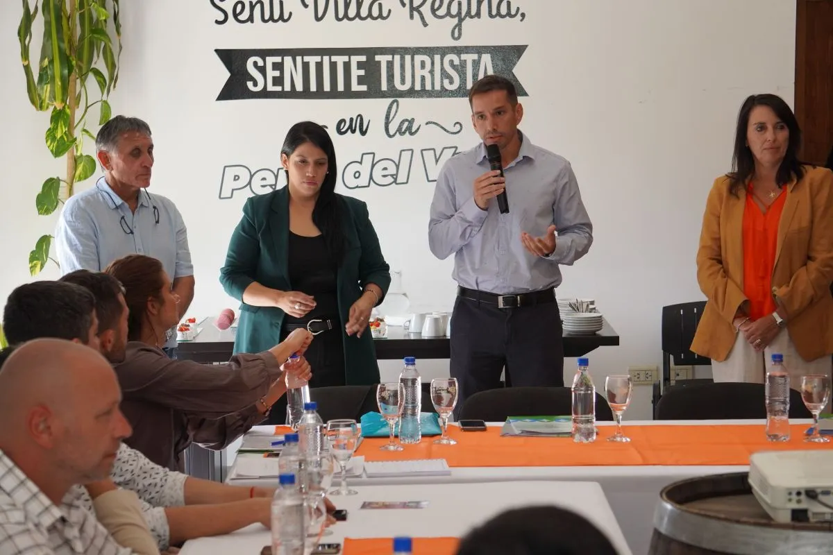 La reunión se realizó en Villa Regina y contó con la participación del Ministro de Gobierno y Trabajo, Agustín Ríos; y de la Secretaria de Gobierno, Natalia Almonacid; junto a los intendentes Claudia Montanaro (Cervantes), Albino Garrone (General Enrique Godoy), Miguel Petricio (Mainqué), Gustavo Amati (Fernández Oro), Luis Albrieu (Villa Regina), Lucas González (Chichinales) y Silvia Penilla (Ingeniero Huergo).