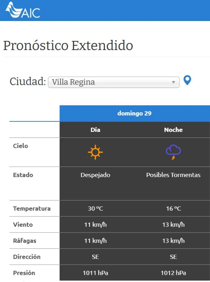 La Autoridad Interjurisdiccional de Cuencas nos anticipa para hoy domingo una jornada con una temperatura máxima que llegará a los 30 grados, mientras que indicó que las condiciones podrían cambiar hacia la noche y esperarse en la zona la formación de tormentas eléctricas.
