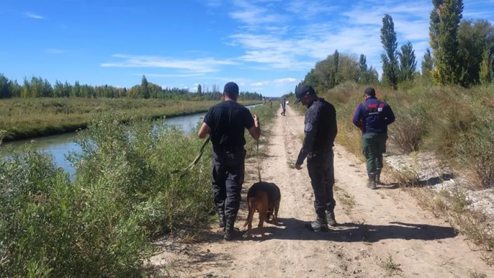 Además, se había solicitado la colaboración de Bomberos Voluntarios de Huergo para la búsqueda en el canal principal de riego.