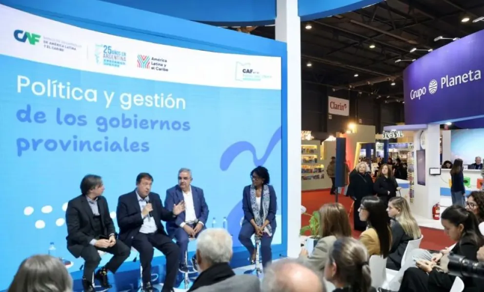 El gobernador de Río Negro, Alberto Weretilneck, en el marco de la Feria Internacional del Libro de Buenos Aires, fue parte de un encuentro de CAF —Banco de Desarrollo de América Latina y el Caribe— sobre financiamiento territorial y políticas públicas, actividad de la que también participó su par de Catamarca, Raúl Jalil.